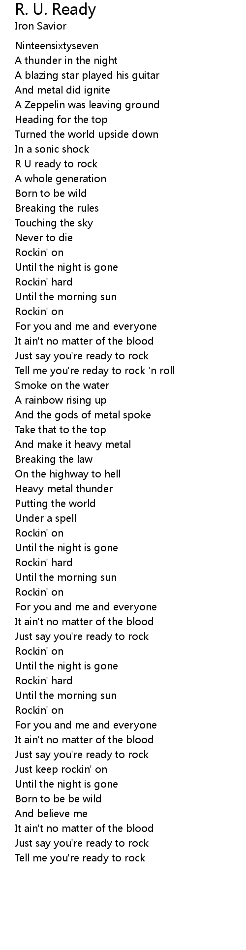 R U ready to rock |