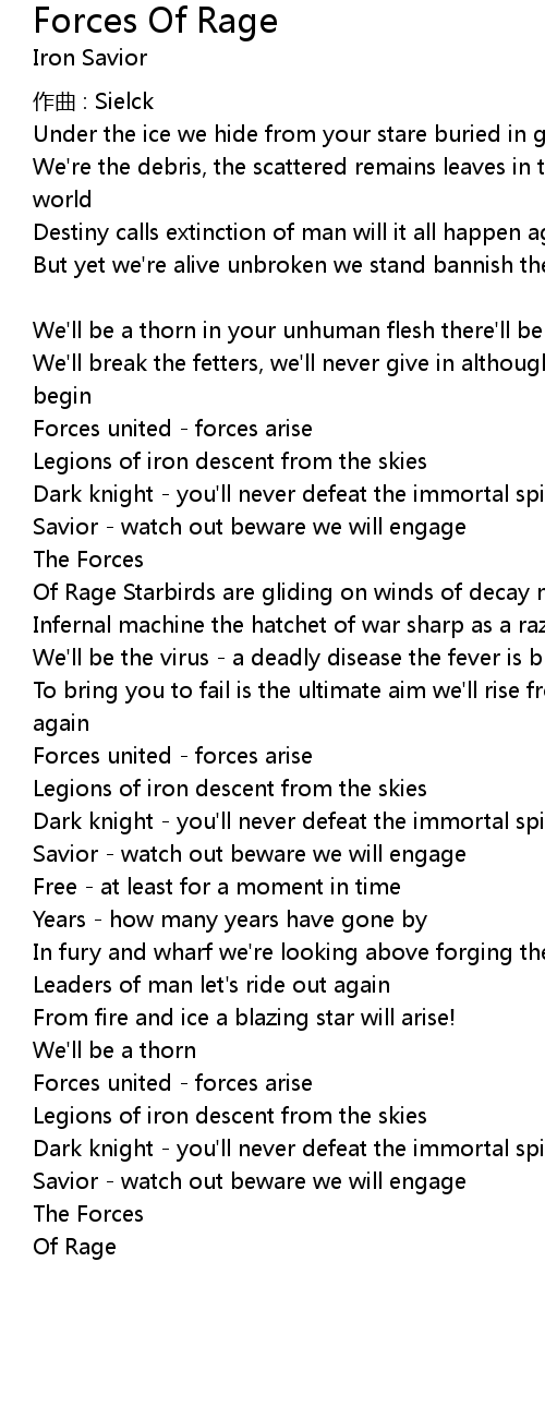 | Song | Forces Of Rage |