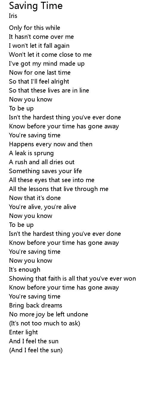 Know before your time has gone away |