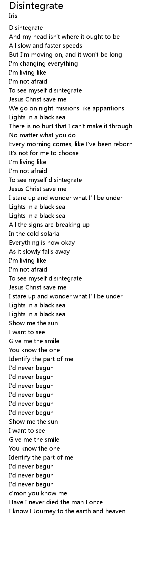 Disintegrate Lyrics