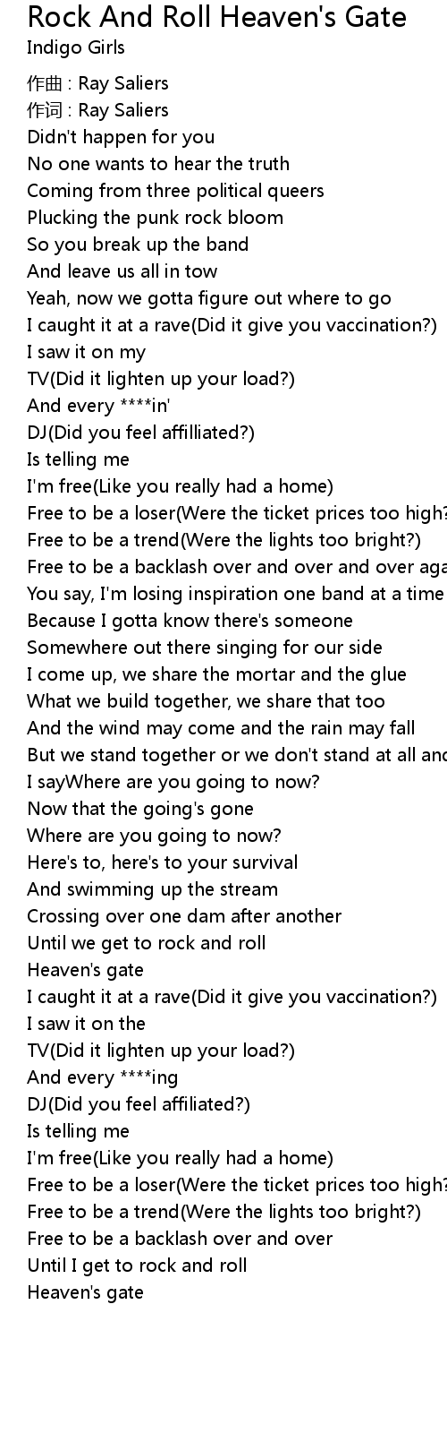 | Song | Rock And Roll Heaven's Gate |