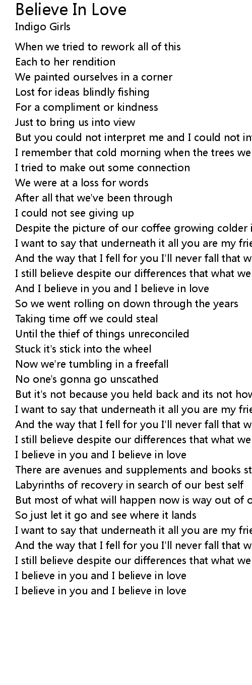 And I believe in you and I believe in love |