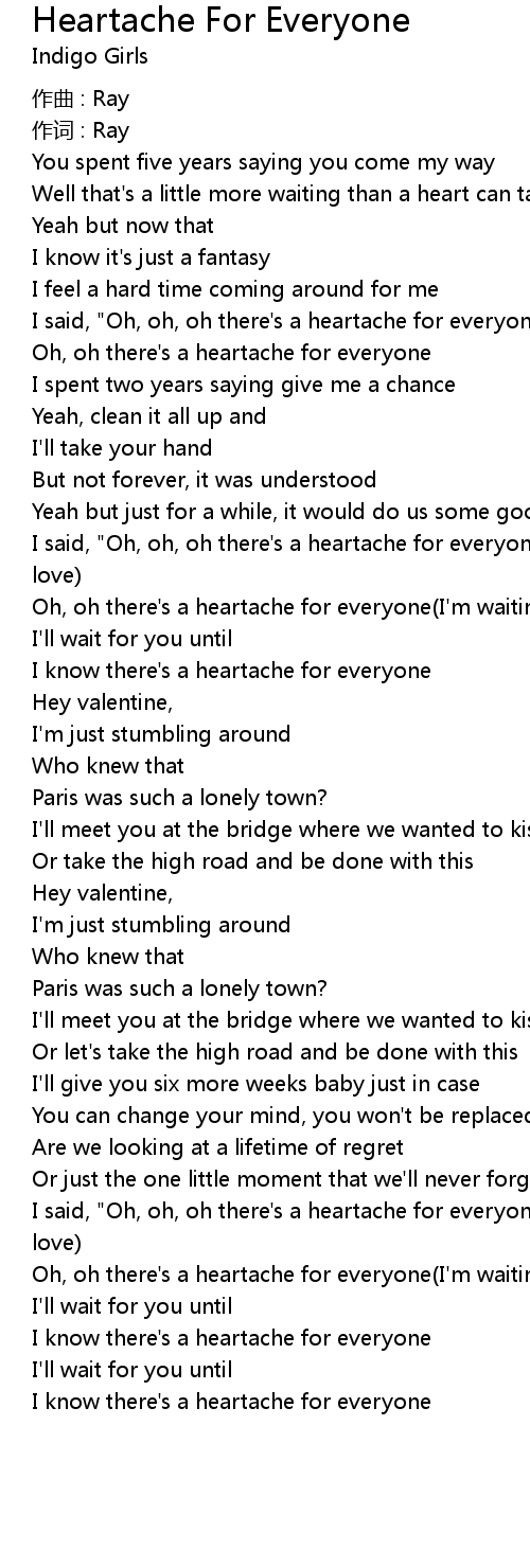 | I know there's a heartache for everyone |