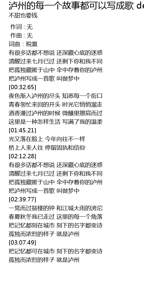 | Song | 泸州的每一个故事都可以写成歌 demo |