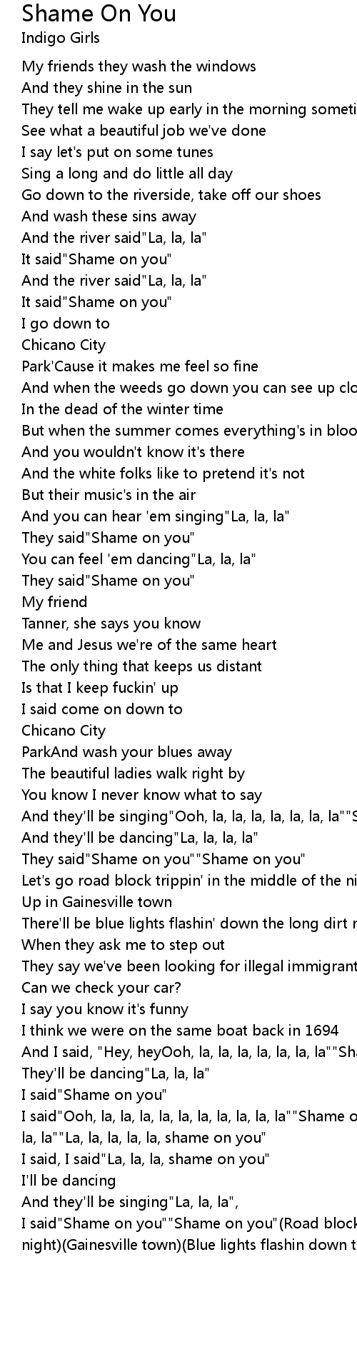 I said"Ooh, la, la, la, la, la, la, la, la, la, la""Shame on you""Shame on you, la, la""La, la, la, la, la, shame on you" |