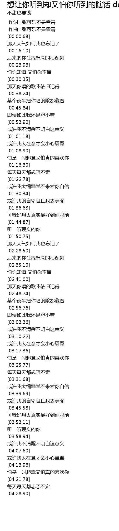 | [00:00.000] | 作词 : 张可乐不是雪碧 |
