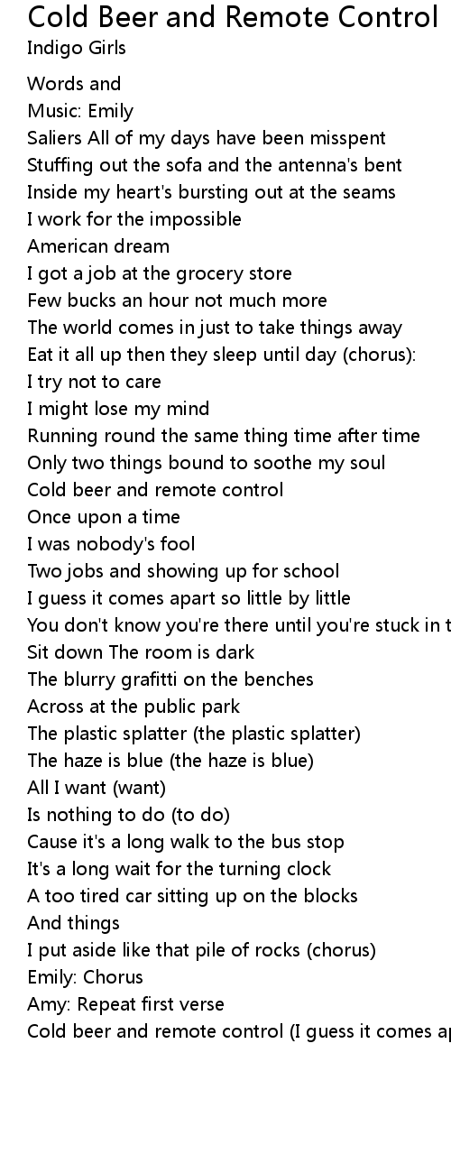 Cold Beer and Remote Control Lyrics