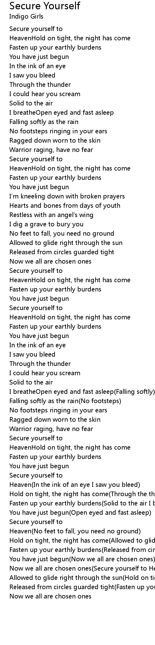 Fasten up your earthly burdens(Solid to the air I breathe)