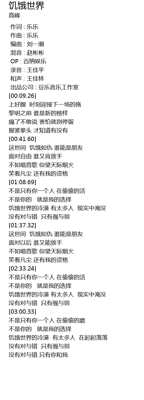 | [03:17.60] | 饥饿世界的冷漠 有太多人 在起起落落 |