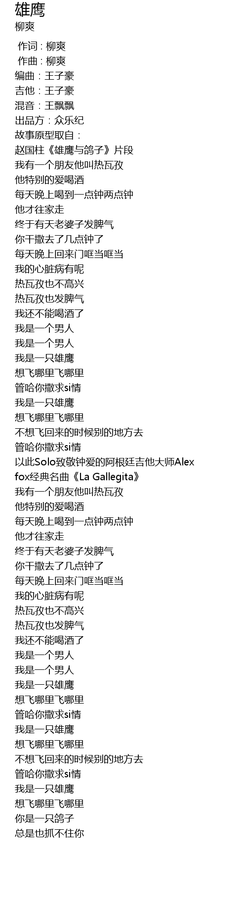 | [00:28.423] | 赵国柱《雄鹰与鸽子》片段 |