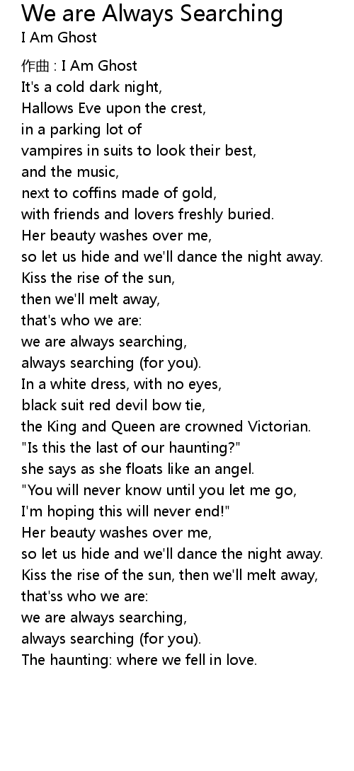 | Song | We are Always Searching |