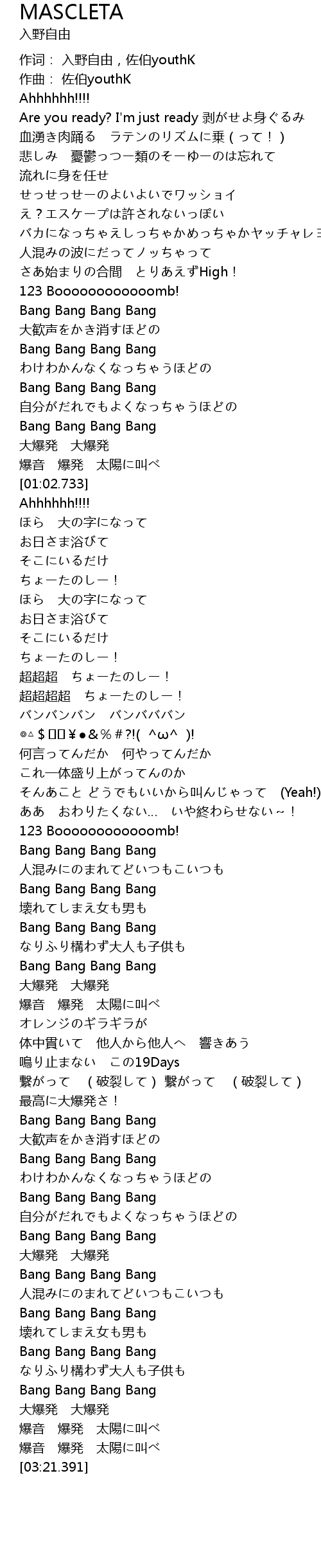 | [02:23.216] | 最高に大爆発さ! |