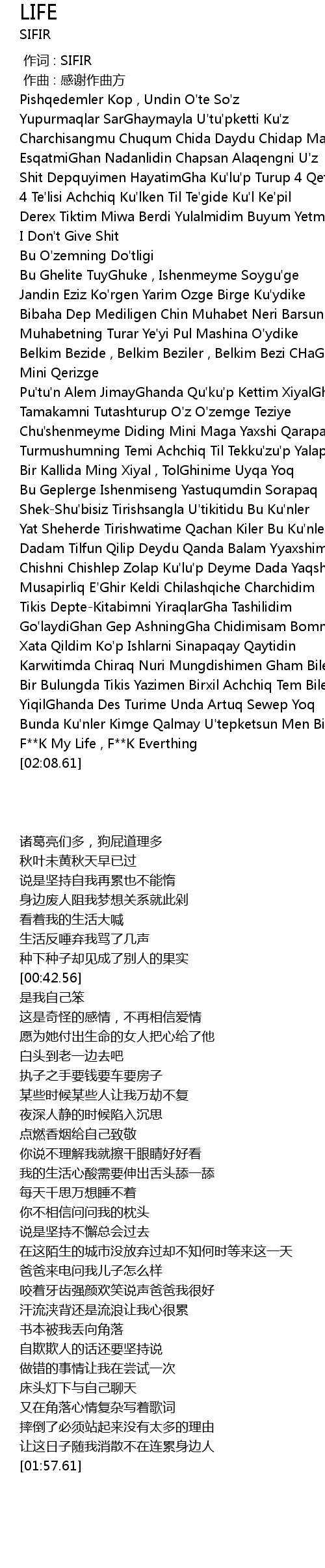 | [01:57.61] | F K My Life , F K Everthing |