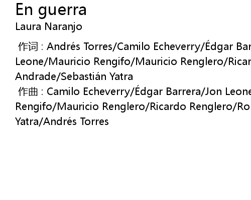 | [00:00.000] | zuo ci : Andre s Torres Camilo EcheverryÉ dgar Barrera Jon Leone Mauricio Rengifo Mauricio Renglero Ricardo Renglero Roberto Andrade Sebastia n Yatra |