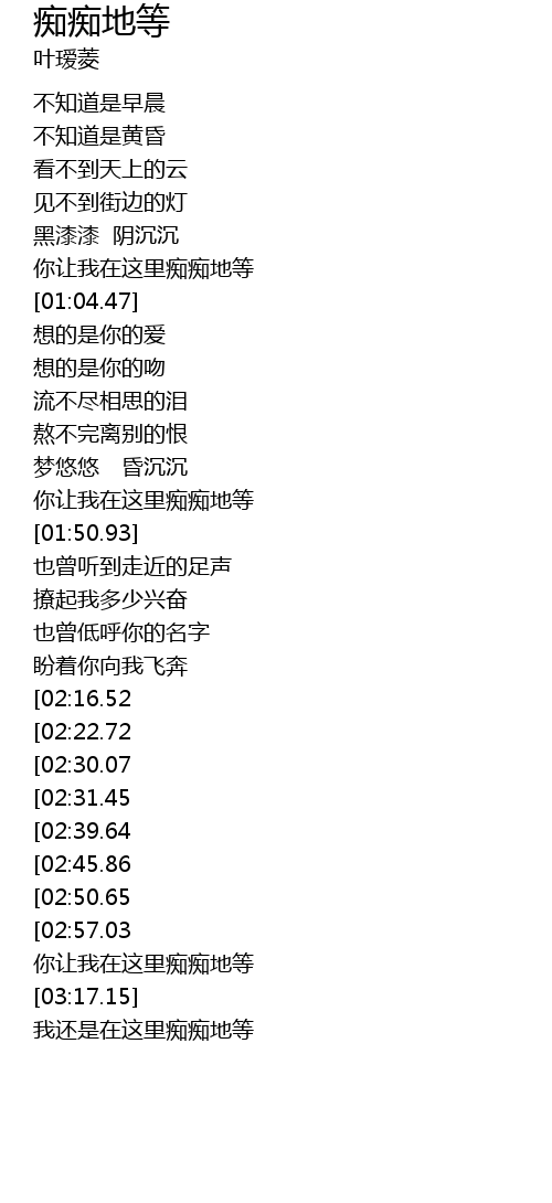 | [01:41.50] | 你让我在这里痴痴地等 |