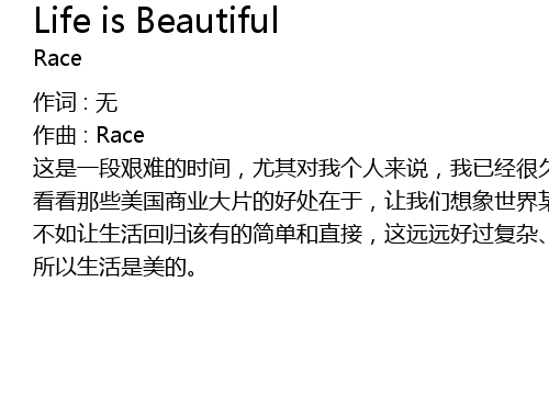 | 不如让生活回归该有的简单和直接,这远远好过复杂、精致而庸俗。再大的苦难都是生活,而生活本身便是艺术。 | |