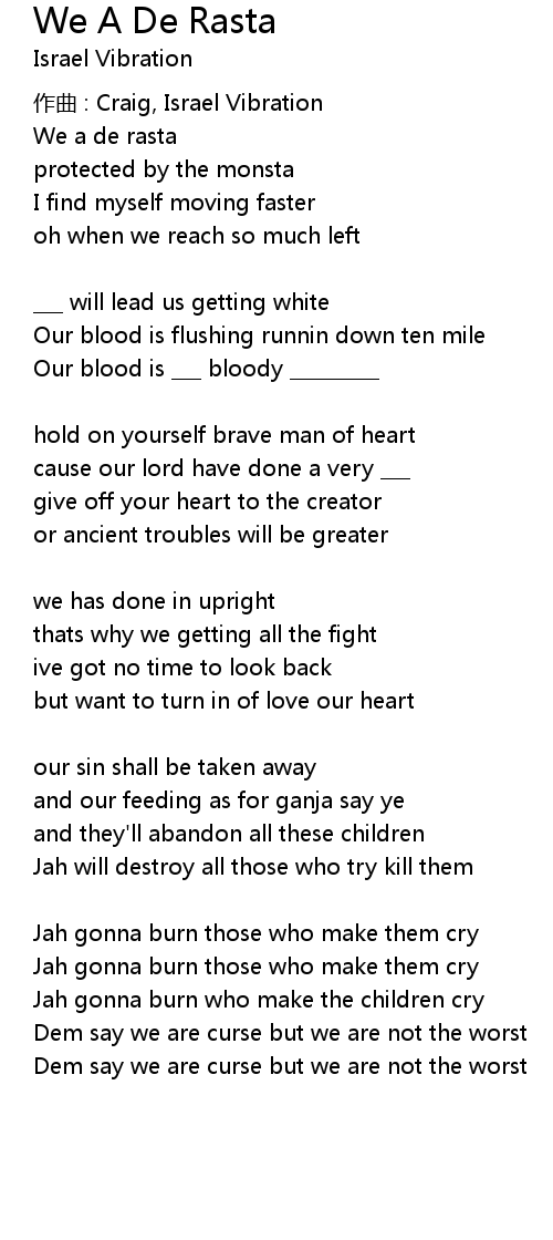 | 作曲 : Craig, Israel Vibration | |