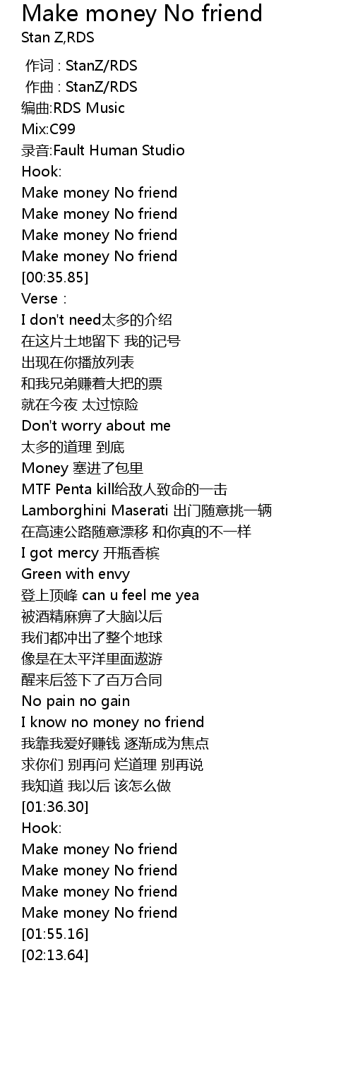 | [00:56.80] | 和我兄弟赚着大把的票 |