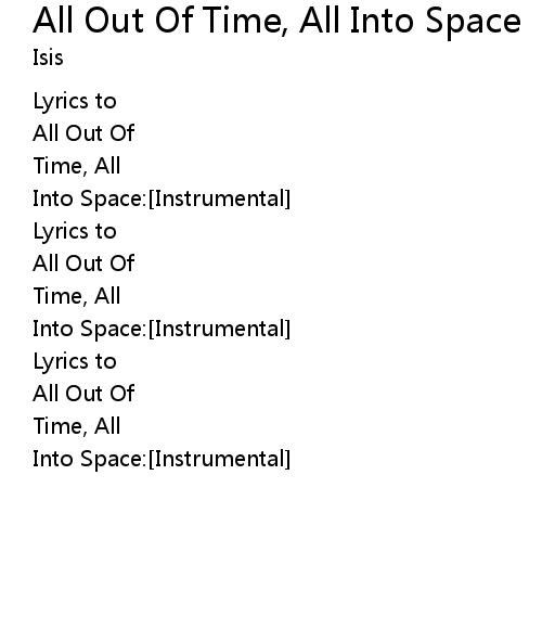 | Song | All Out Of Time, All Into Space |