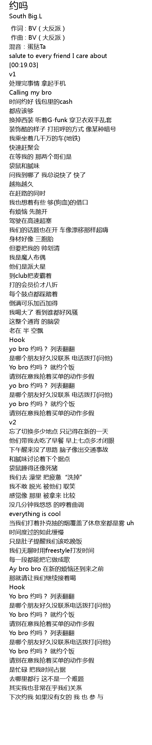 | [02:21.010] | Yo bro 约吗? 列表翻翻 |