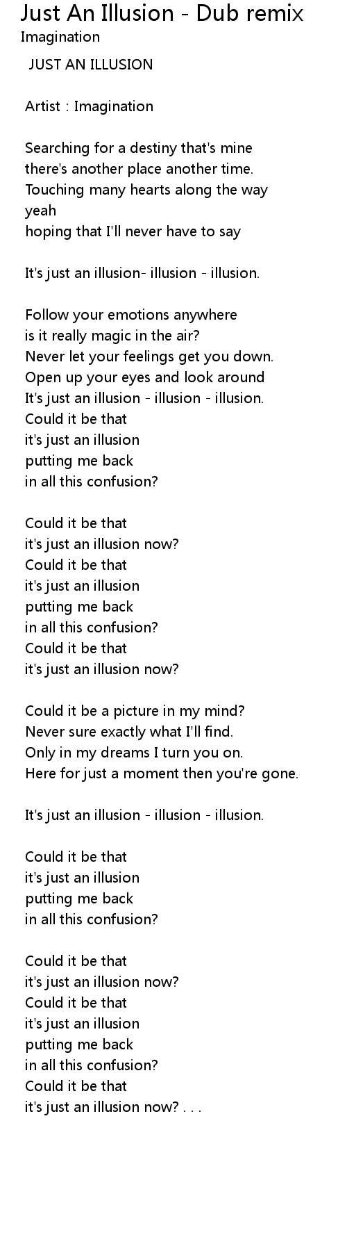 | It' s just an illusion illusion illusion. | |