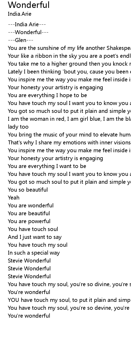 YOU have touch my soul, to put it plain and simple you are wonderful |