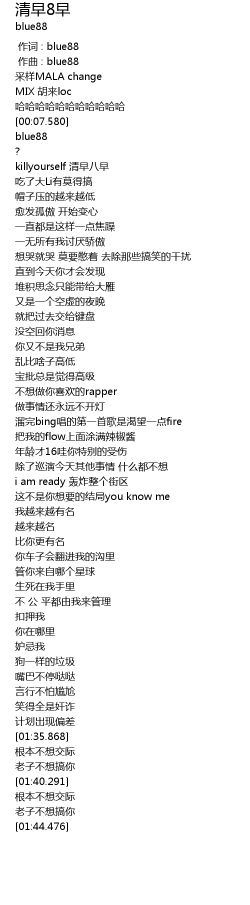 | [00:27.080] | killyourself qīng zǎo bā zǎo |