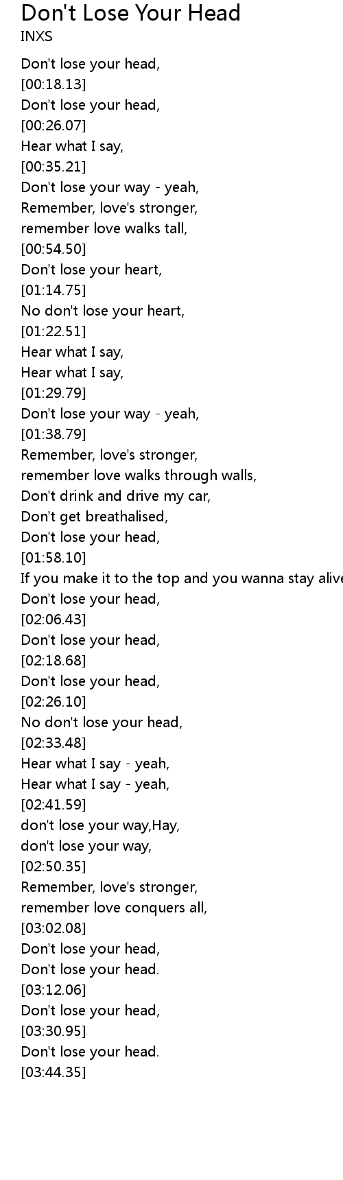 No don't lose your head, |