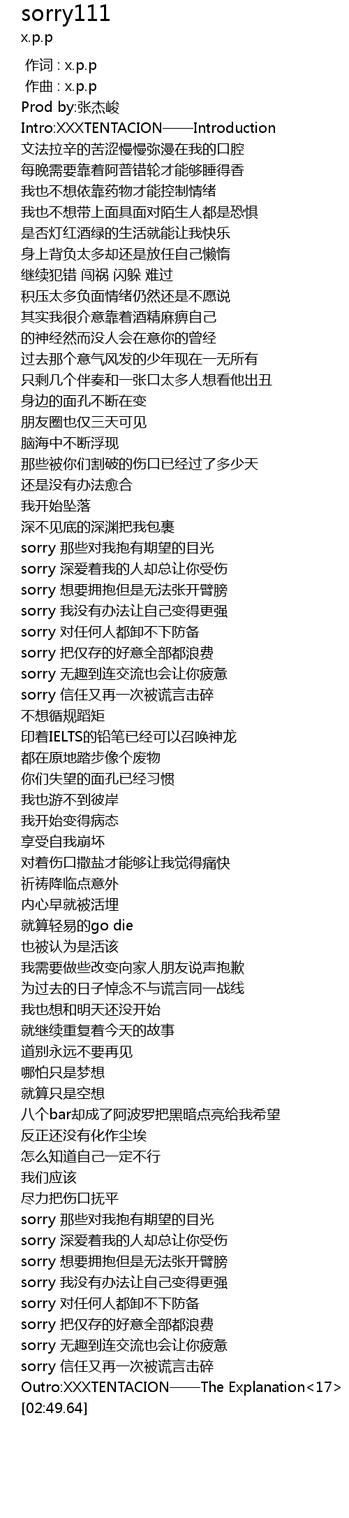 | [02:37.02] | Outro:XXXTENTACION——The Explanation<17> |