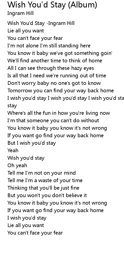 Wish You'd Stay -Ingram Hill |