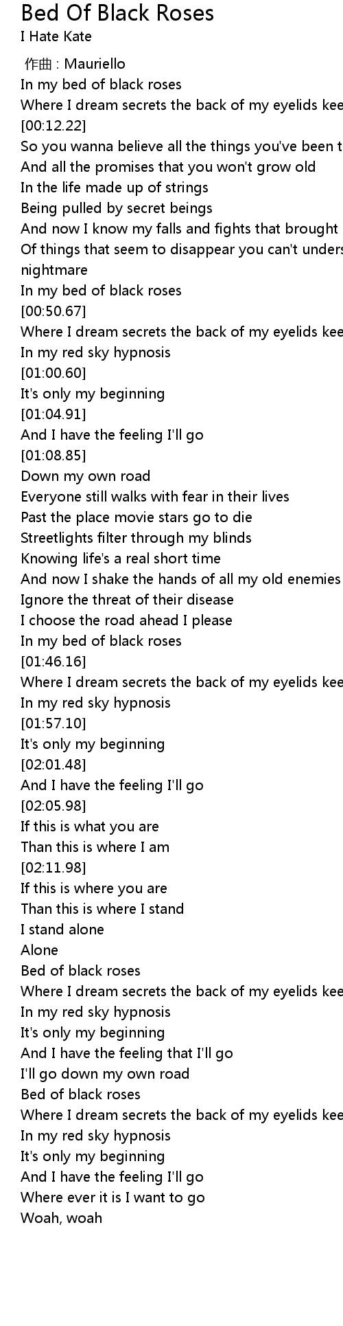 | [03:15.62] | Bed of black roses |