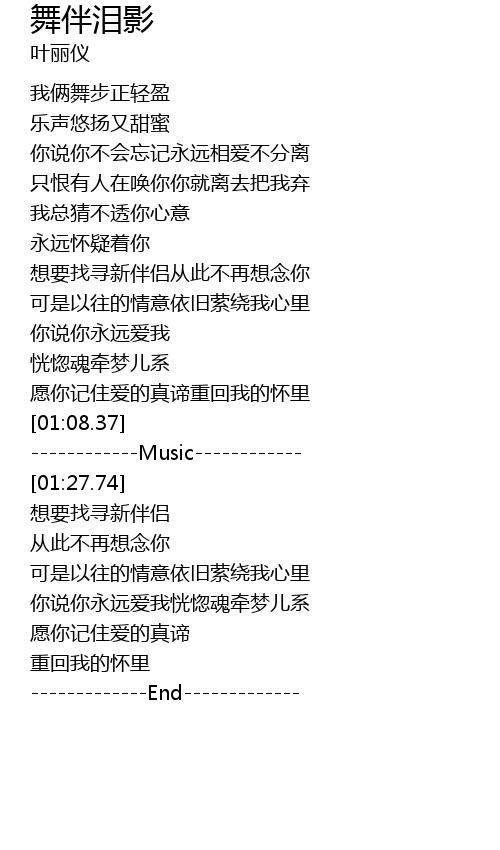 | [00:36.01] | 想要找寻新伴侣从此不再想念你 |