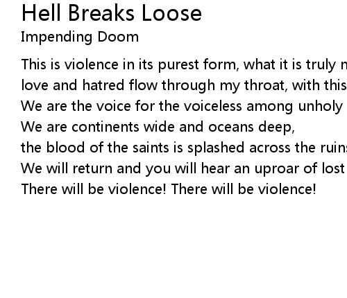 | Song | Hell Breaks Loose |