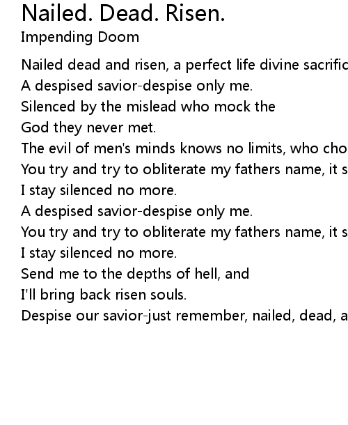 Nailed dead and risen, a perfect life divine sacrifice. |