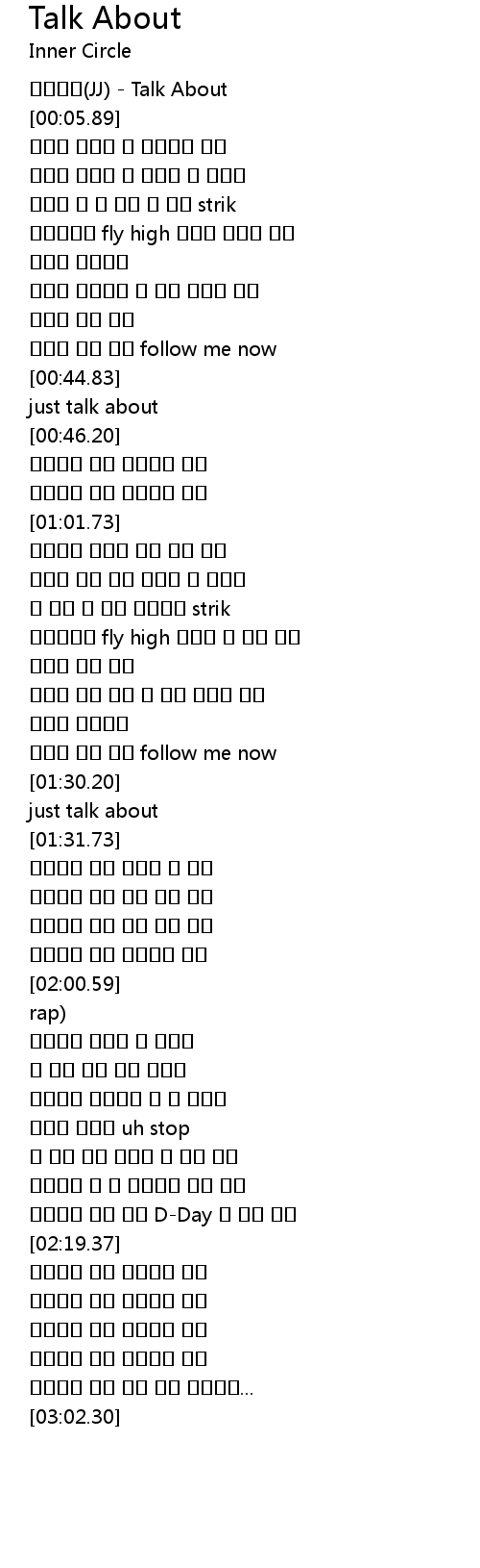 | [00:01.12] | 제이제이(JJ) - Talk About |