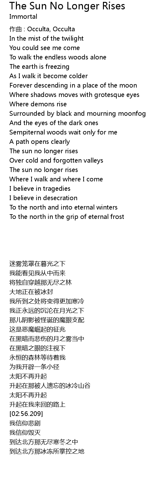 | Song | The Sun No Longer Rises |