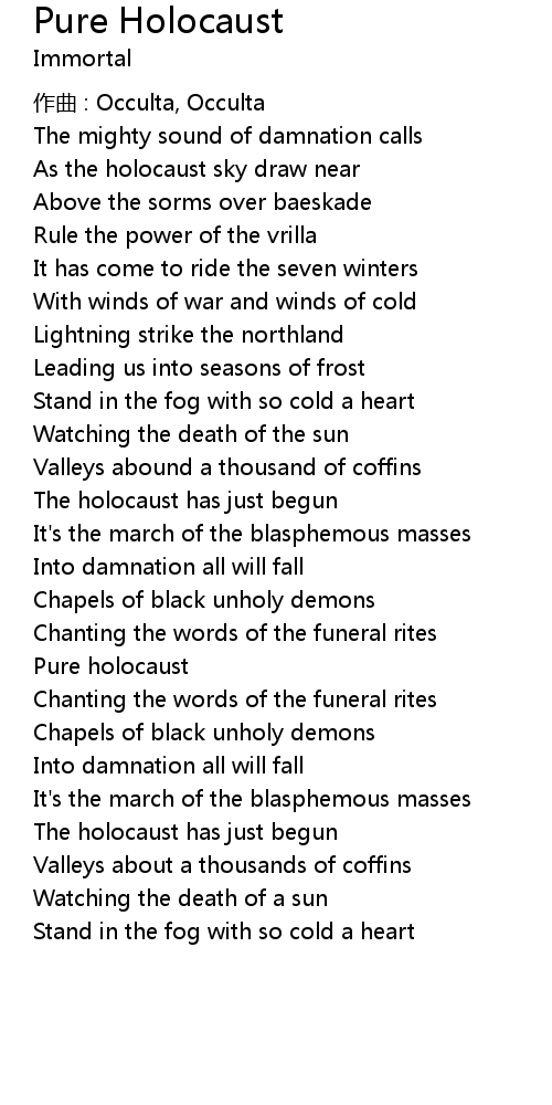 | Song | Pure Holocaust |