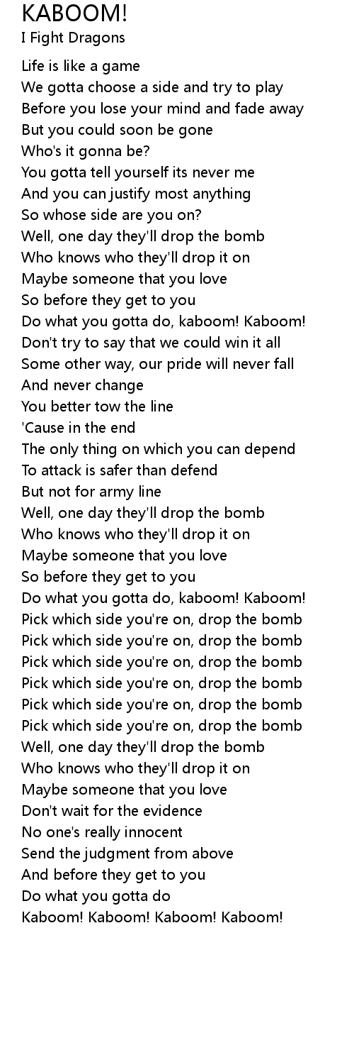 Pick which side you're on, drop the bomb |