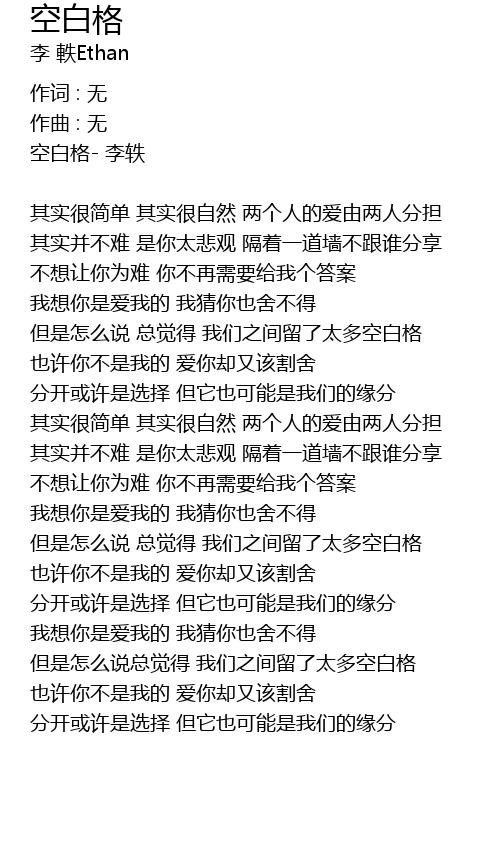 | 但是怎么说 总觉得 我们之间留了太多空白格 | |