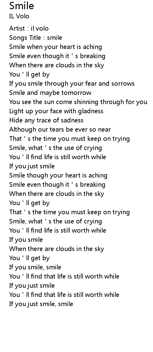 | [02:23.55] | Smile though your heart is aching |