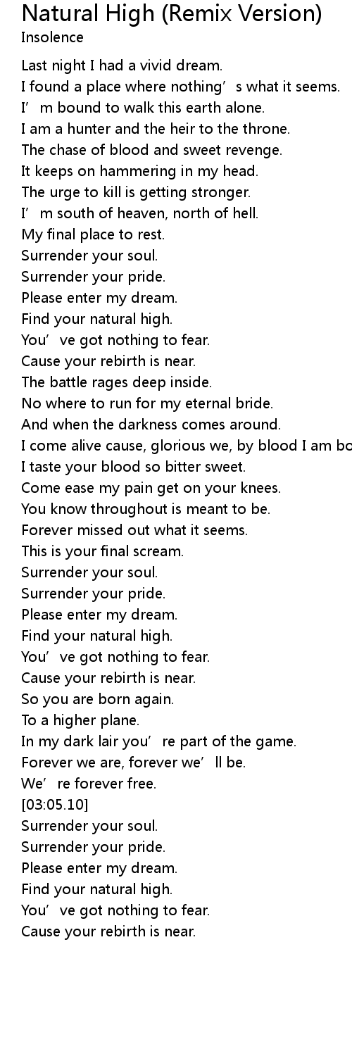 | [00:32.60] | The chase of blood and sweet revenge. |