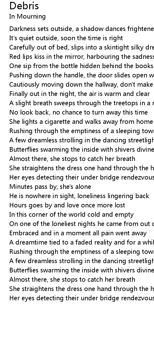 Darkness sets outside, a shadow dances frightened on the bedroom wall |