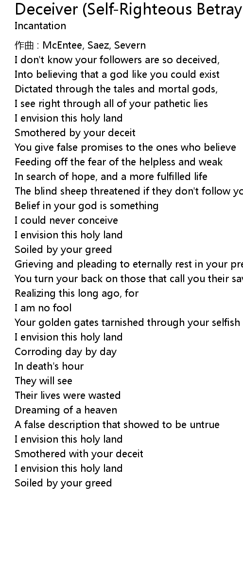 | Song | Deceiver (Self-Righteous Betrayer) |