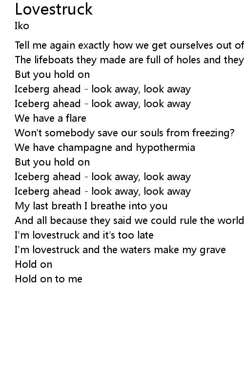 | I'm lovestruck and the waters make my grave | |