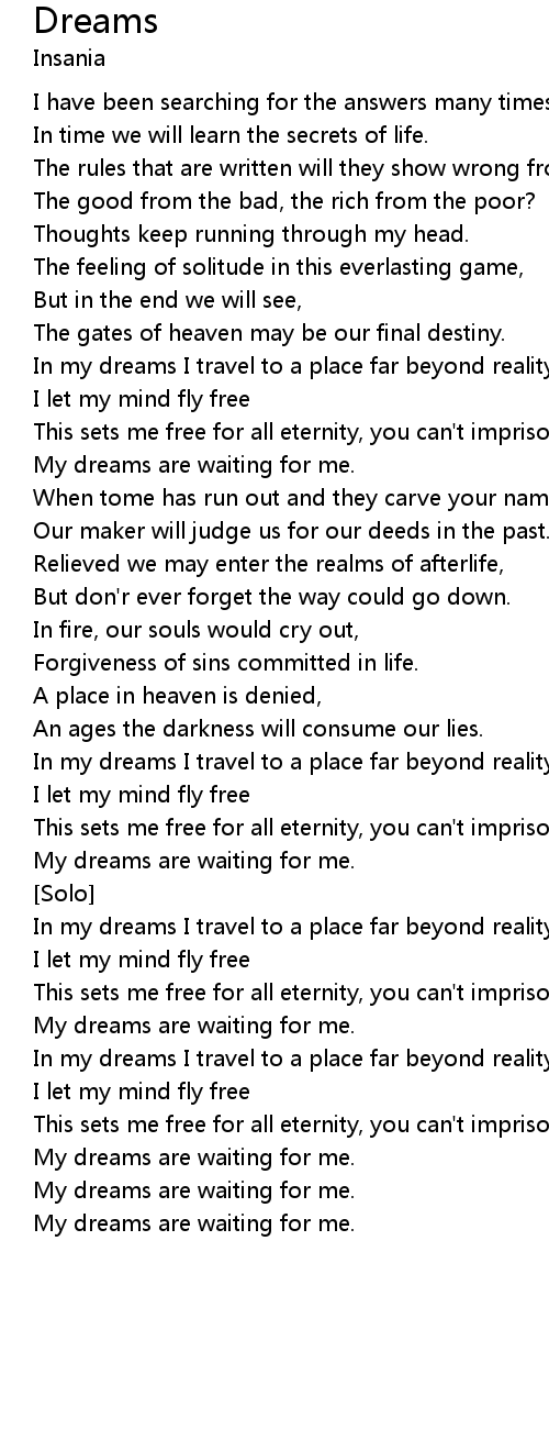 In my dreams I travel to a place far beyond reality |