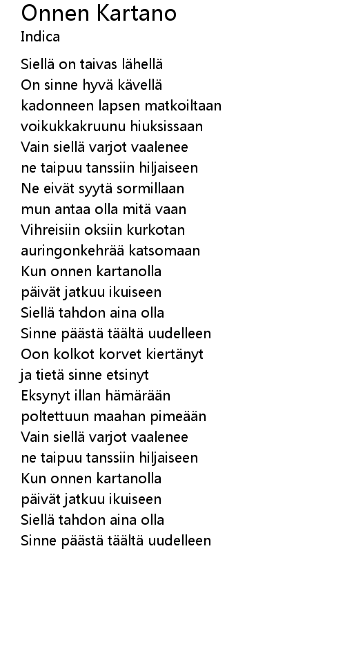 | Song | Onnen Kartano |