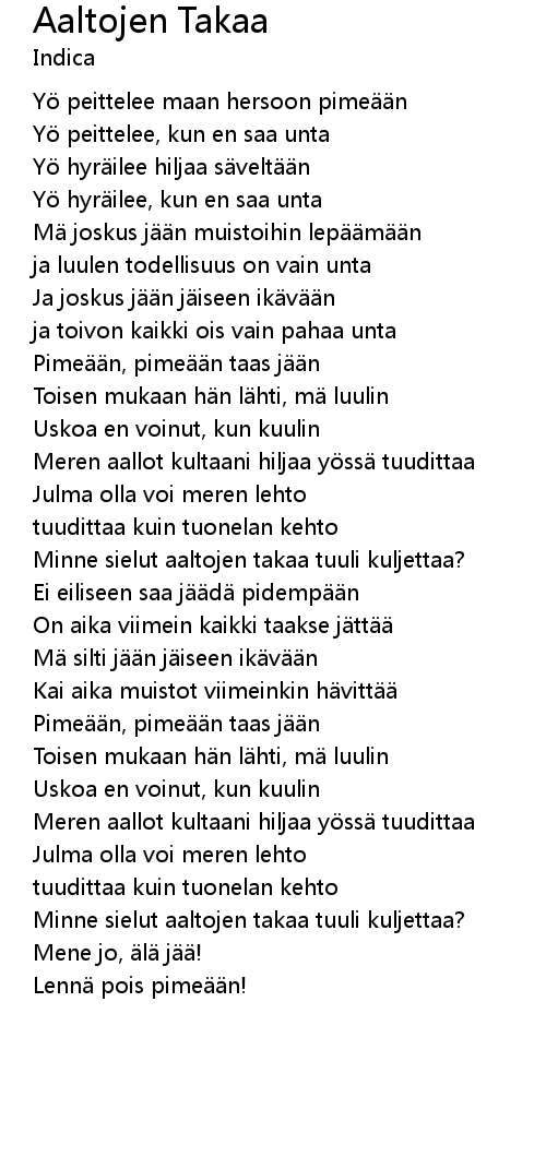 | Meren aallot kultaani hiljaa y ss tuudittaa | |