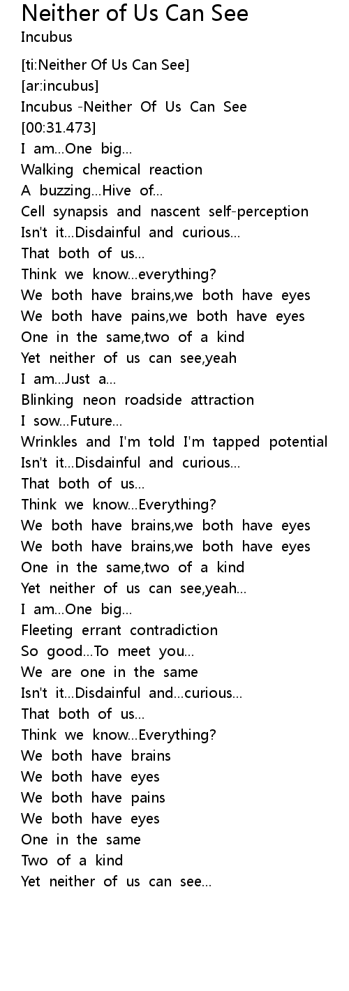 Incubus -Neither Of Us Can See |