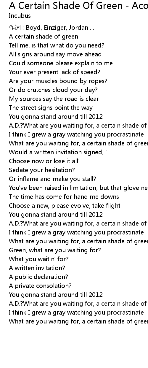 | Song | A Certain Shade Of Green - Acoustic Version |