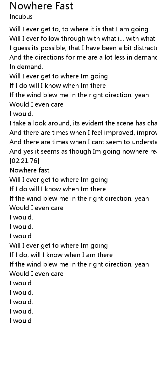 Nowhere Fast Lyrics